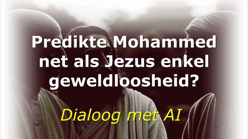 Vraag aan AI Grok: ‘Predikte Mohammed net als Jezus enkel geweldloosheid?’ Dan volgt een zeer uitgebreid dialoog! Hier dit ook online te lezen: https://nathanonline.nl/dialoog-met-ai/ Namen die genoemd worden: Gandhi, Mohammed, Krishnamurti, Jezus en Boeddha. Een dialoog over liefde en geweldloosheid.