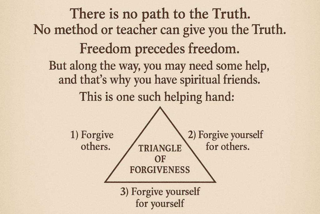 Triangle of Forgiveness: 1) Forgive others. 2) Forgive yourself for others. 3) Forgive yourself for yourself.